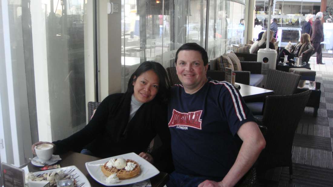 Me and Peter meet in FilipinoKisses April 2013, I was working in Hong Kong at that time, I told him that my free time to chat is when I finish my work which usually was at 11pm, we chat almost everyday and send messages. November 2013 was our first meeting, he visited me in Hong Kong. 6 months later he come again for my birthday, then when my contract ends last August 2014 , we meet in HK Int'l airport and he go with me in my home town in La union and he meet my family and friends. We plan to get marry in La union but it was complicated because Peter was divorced so we decide to apply for fiancée visa which had been granted last February 2015.